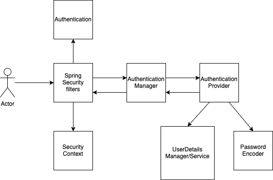 UsernamePasswordAutenticationFilter->AuthenticationManager(ProviderManger)로 전달AuthenticationManager에서 등록된 provider 중에 인증이 가능한 provider를 찾음UsernamePasswordAuthenticationToken의 경우DaoAuthenticationProvider가 선택됨